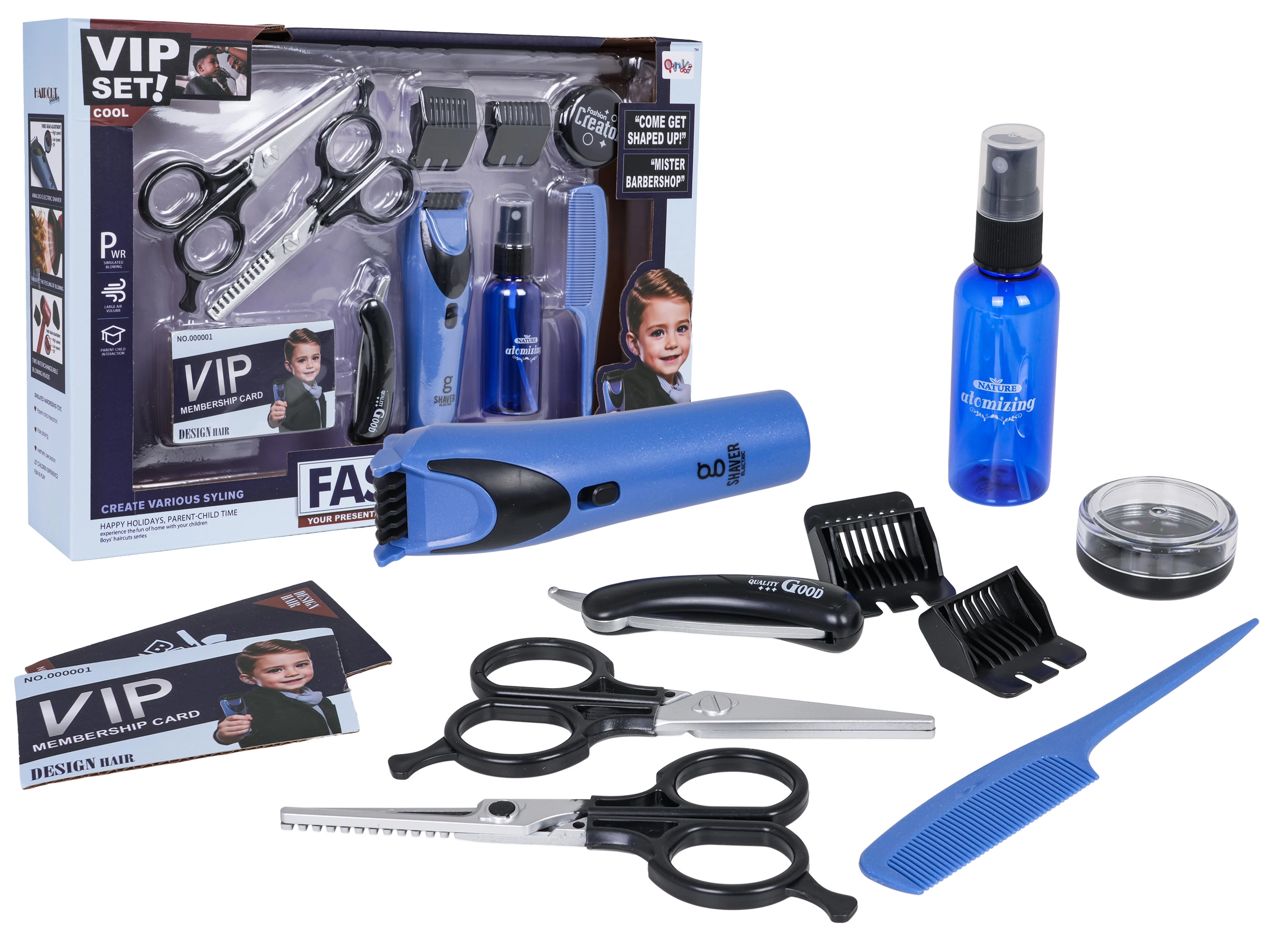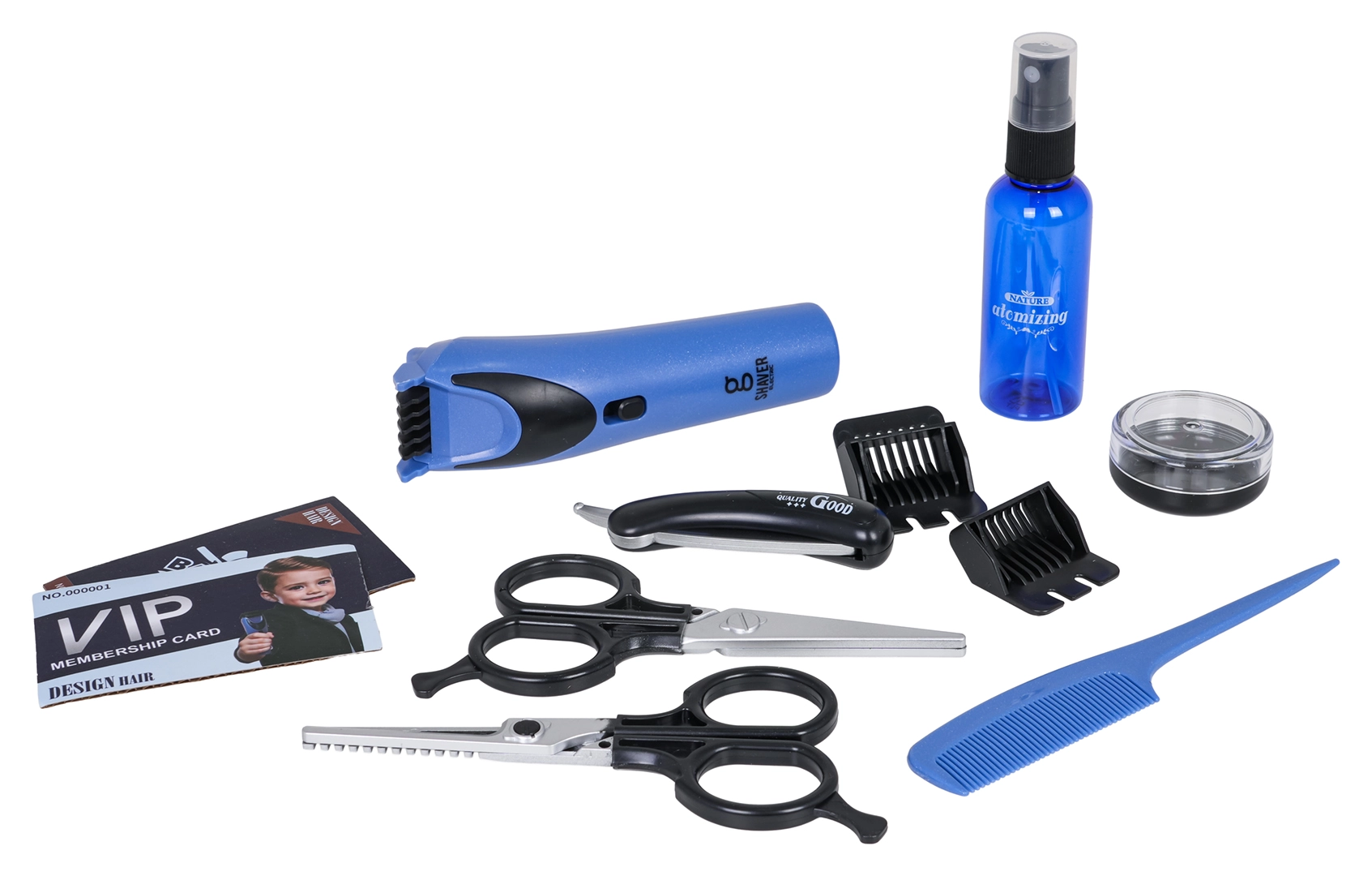 Glavna zvezda je strižnik z zvočnimi učinki in premičnimi rezili za realističen doživljaj igre. Zahvaljujoč 11 kosom dodatkov lahko otroci popolnoma “postrežejo” stranko – od striženja prek oblikovanja do nege brade.
