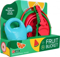 Odkrijte praktičen komplet za pesek, s katerim bo vsaka igra ob vodi in v peskovniku še zabavnejša. Zložljivo vedro iz odporne plastike in silikona se hitro zloži v kompaktno obliko, zato gre v vsako torbo. Lopatka, grabljice in kannica so zasnovane za male otroške roke – lahke, varne in z gladkimi robovi.