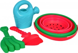 Set podpira kreativno in senzorično igro, razvija fino motoriko in domišljijo otrok. Zaradi kakovostnih materialov je primeren za vsakodnevno uporabo na plaži, v peskovniku in na vrtu.