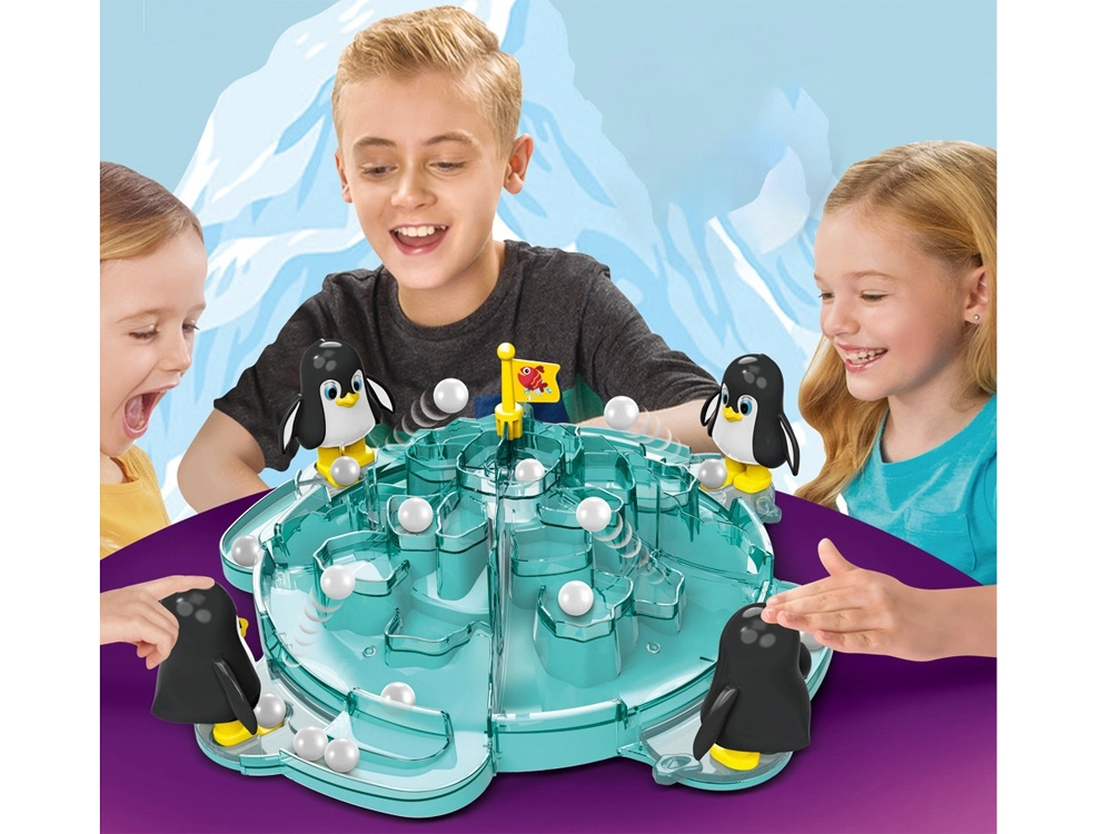 Podaj se v noro »bitko s snežnimi kepami« na ledeni gori! Vsak igralec upravlja svojega pingvina – le pritisneš mu na glavo in izstreliš kroglico po vijugastih poteh proti vrhu. Igra prinaša hitro, dinamično in glasno zabavo za otroke in odrasle ter hkrati razvija fino motoriko in koordinacijo oko–roka.