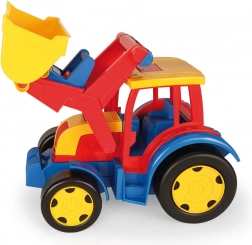 Gigant otroški traktor z nakladačem v rdeče‑rumeni izvedbi je robusten gradbeni stroj za male graditelje. Funkcijska sprednja žlica omogoča zajemanje, stresanje in odrivanje materiala ter otrokom ponuja neskončne možnosti igre v peskovniku, na vrtu in doma.