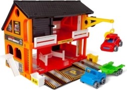 Otroški dvonadstropni avtoservis z dvigalom, žerjavom in bogatim priborom prenese svet popravil neposredno v otroško sobo. V kompletu so 2 avtomobila, prikolica, zabojniki, klančine in 34 nalepk. Varni, trpežni materiali ter priročen ročaj za enostavno prenašanje. Odlično za razvoj motorike, domišljije in logičnega razmišljanja otrok od 3 let.