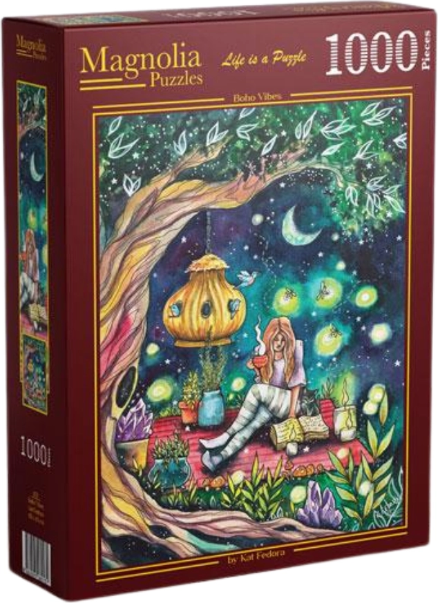 Uživajte v sproščujočem sestavljanju sestavljanke s 1000 koščki v sodobnem boho slogu. Idealno za ljubitelje oblikovanja in mirnih trenutkov, dimenzije dokončane slike so približno 48 × 68 cm. Zahvaljujoč kakovostnemu tisku in natančnim izrezom koščkov vas čaka poglobljena izkušnja in elegantna notranja dekoracija po dokončanju.