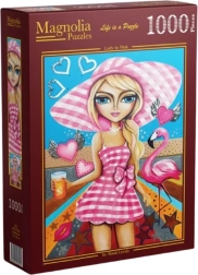Odkrijte čar sestavljanja in poudarite nežno estetiko motiva »Gospa v rožnatem«. Ta sestavljanka s 1000 koščki je odlična izbira za mirne večere, razvoj potrpežljivosti in zbranosti ter kot elegantna dekoracija po dokončanju.