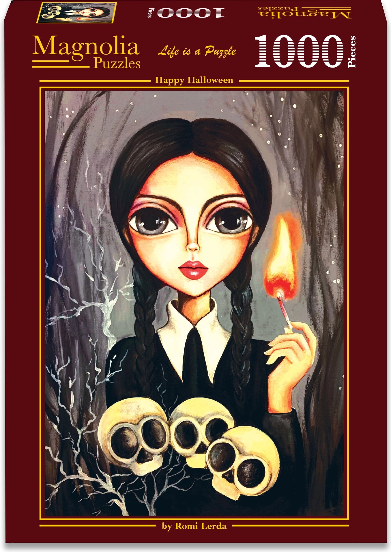 Odkrijte veselje do sestavljanja s sestavljanko MAGNOLIA Happy Halloween. Zahvaljujoč 1000 natančno izrezanim koščkom in ostri, barvno zvesti grafiki je sestavljanje tekoče in zabavno. Končni motiv velikosti pribl. 48 × 68 cm je kot nalašč za uokvirjanje in bo vaš dom napolnil s sezonskim halloweenskim vzdušjem.