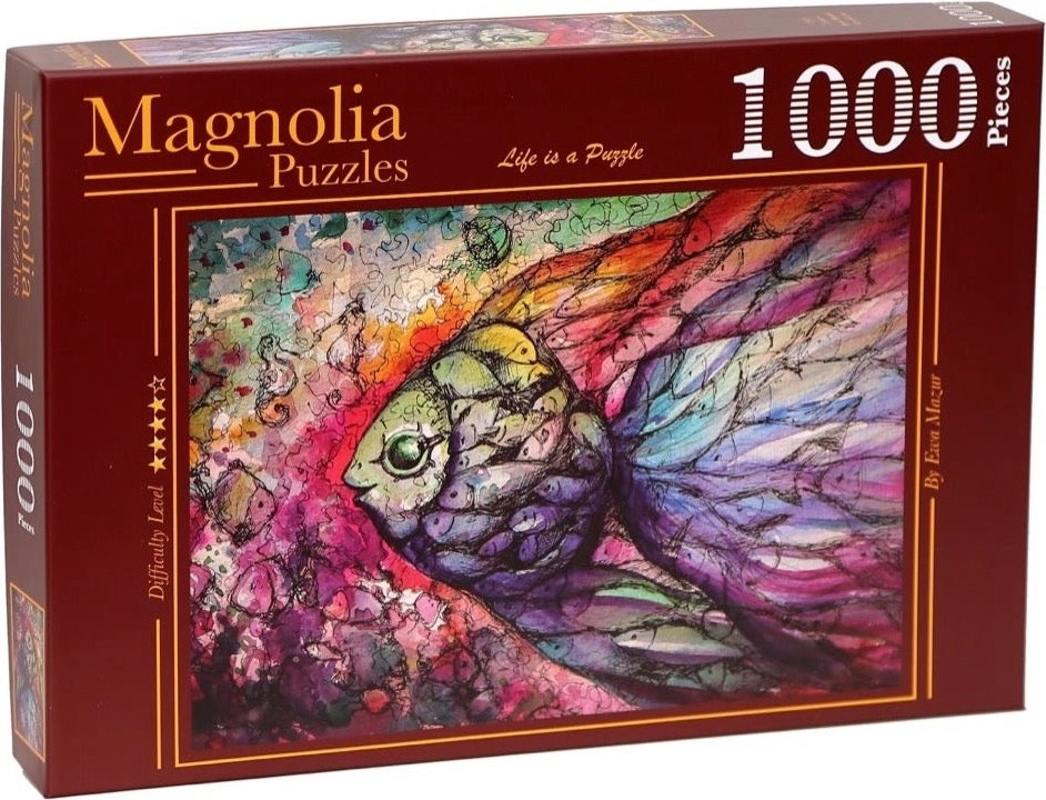 Odkrijte čar podmorskega sveta z motivom ribic, ki prinaša žive barve in fine detajle. Sestavljanka s 1000 kosi ponuja prijeten izziv, razvija zbranost in je odličen način, kako si odpočiti od zaslonov.