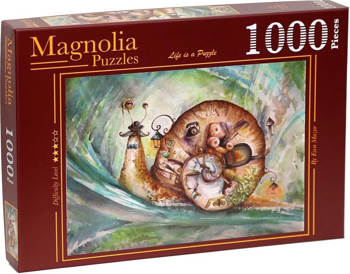 Ta sestavljanka s polžem prinaša stilski in pomirjujoč motiv, ki je odličen za sprostitev doma. Zahvaljujoč 1000 trpežnim koščkom boste uživali v tekočem sestavljanju in kakovostnem rezultatu, primernem za uokvirjanje.