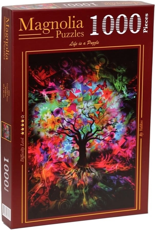 Uživajte v sprostitvi z lepim motivom barvitega drevesa na puzzlih s 1000 koščki. Idealno za mirne večere in družinsko sestavljanje, z velikostjo po sestavi približno 48 × 68 cm ter kakovostno izdelavo za natančno spajanje koščkov.