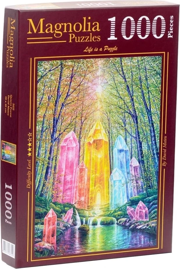 Potopite se v čudovito ilustracijo skrivnostnega kristalnega gozda in uživajte v urah zabave ter počitka. Sestavljanka s 1000 koščki ponuja idealno zahtevnost za odrasle in starejše otroke. Zahvaljujoč kakovostnemu tisku in trdnemu kartonu posamezni koščki odlično pristajajo in ustvarijo ostro, barvno verno podobo.