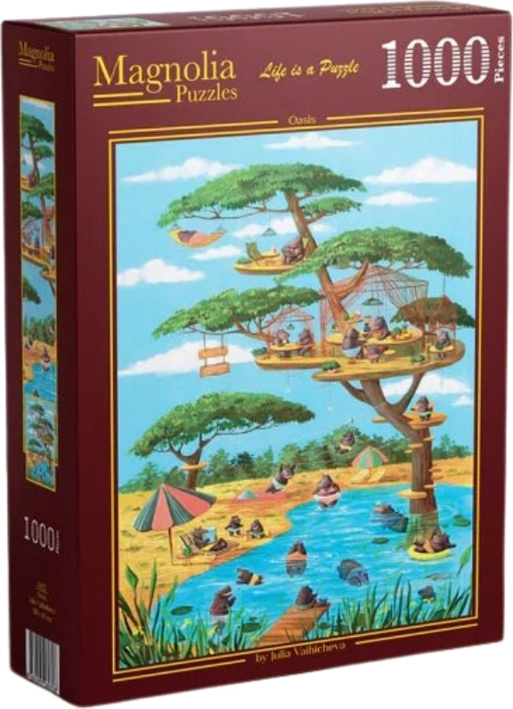 Odkrijte veselje do sestavljanja s sestavljanko MAGNOLIA Oaza s 1000 koščki. Zaradi optimalne velikosti po sestavi je idealna za uokvirjanje ali ponovno sestavljanje. Motiv oaze prinaša sproščeno atmosfero in je odlična kot darilo za odrasle in starejše otroke.