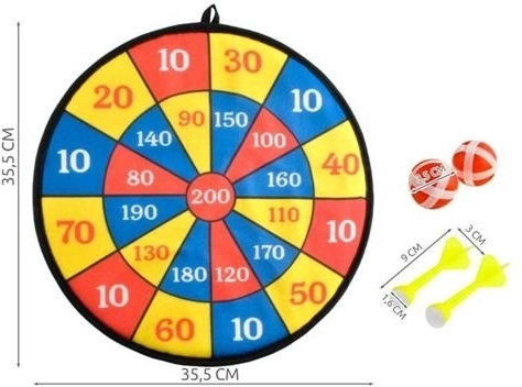 Klasična tarča za pikado – z žogicami in puščicami na ježka. Je idealna igrača, ki vadi natančnost in koordinacijo oči ter rok. Razdaljo od tarče je mogoče postopoma povečati, s čimer se poveča zahtevnost igre. Tarča ima prevlečeno površino iz vlaknate tkanine, na katero se dobro oprimejo žogice z našitimi trakovi z drobnimi kaveljčki. Ta igra s puščicami na ježka je odlična zabava za male in velike.