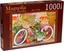 Uživajte ure mirne zabave z elegantnim motivom kolesa, polnega rož. Sestavljanka s 1000 kosi je odlična izbira za ljubitelje dizajnerskih motivov in sproščujočega sestavljanja. Po sestavi nastane dekorativna slika velikosti približno 68 × 48 cm, primerna za razstavljanje.