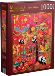 Odkrijte veselje do sestavljanja z motivom pand. 1000 natančno izrezanih kosov predstavlja prijeten izziv za začetnike in napredne, po sestavljanju pa nastane elegantna dekoracija velikosti pribl. 48 × 68 cm.
