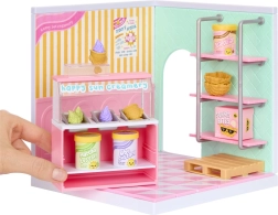 Odkrij svet miniaturnih prizorov s kolekcijo MGA’s Mini Verse Make It Mini Spaces – kapsule, polne presenečenj, ki ti pomagajo ustvariti in razstaviti tvoje miniaturne scene. V vsakem paketu najdeš različne dele pohištva in dodatke za tematske prostore, kot so sladoledarna, pekarna, solatni bar ali zamrzovalna vitrina. Zahvaljujoč modularnim policam, zložljivim stojalom in podrobnim dodatkom si zlahka ustvariš izvirne mini kotičke za igro in razstavljanje.