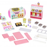 Vitrina, korneti in lončki z okusi, kot sta matcha in ube, tvoji mini sceni dodajo sladek slog. Idealno za ljubitelje mini hrane in kreativnega aranžiranja.