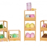 Izberi med različnimi slogi – od prikupne “Happy Sun Creamery” s kepicami sladoleda, preko “Stay Fresh Salad Bar”, “Sun‑Baked Sweets” pekarne, do zamrzovalnih vitrin in tržniških stojal z zabojčki. Zložljivi moduli in izvlečni zaboji omogočajo preproste prestavitve in maksimalen izkoristek prostora. Zaradi kompaktnih kapsul so idealne tudi kot zbirateljsko presenečenje ali darilo.