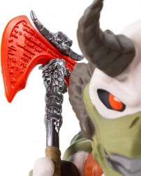 Značilni rogovi, rdeče oči in olivno oklep z emblemi, preneseni v zabavno račjo podobo – odlično za vsako DOOM zbirko.