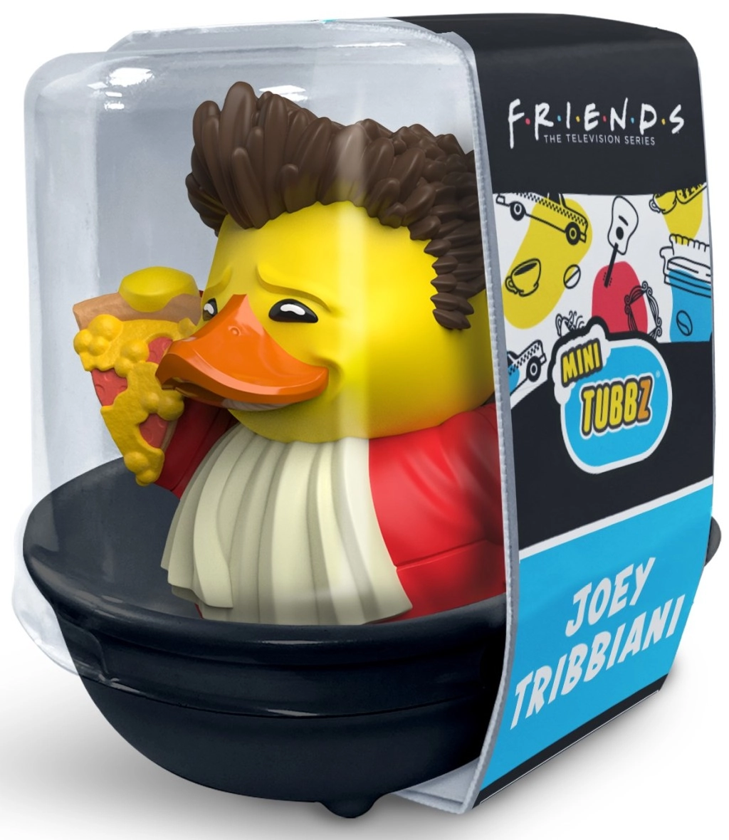 Mini račkica TUBBZ iz kultne serije Prijatelji prinaša Joeyja Tribbianija v simpatičnem, podrobno izdelanem račjem dizajnu. Zaradi kompaktne višine 5,5 cm je idealna za manjše vitrine, na mizo ali kot drobna pozornost za ljubitelje serije.