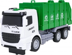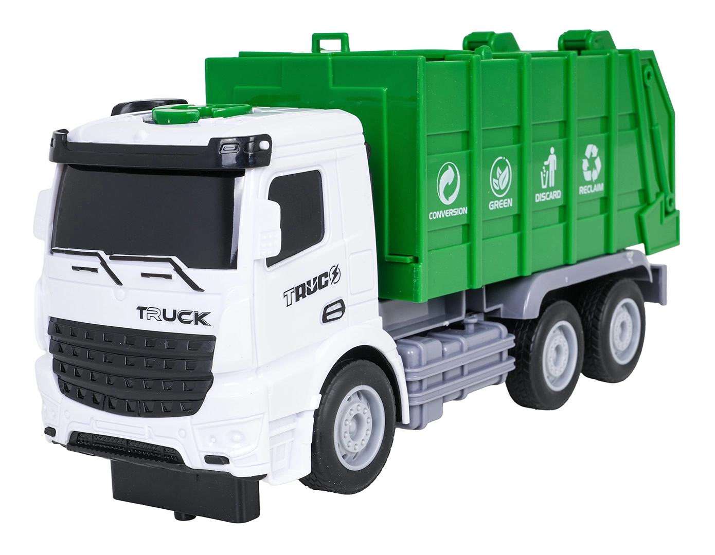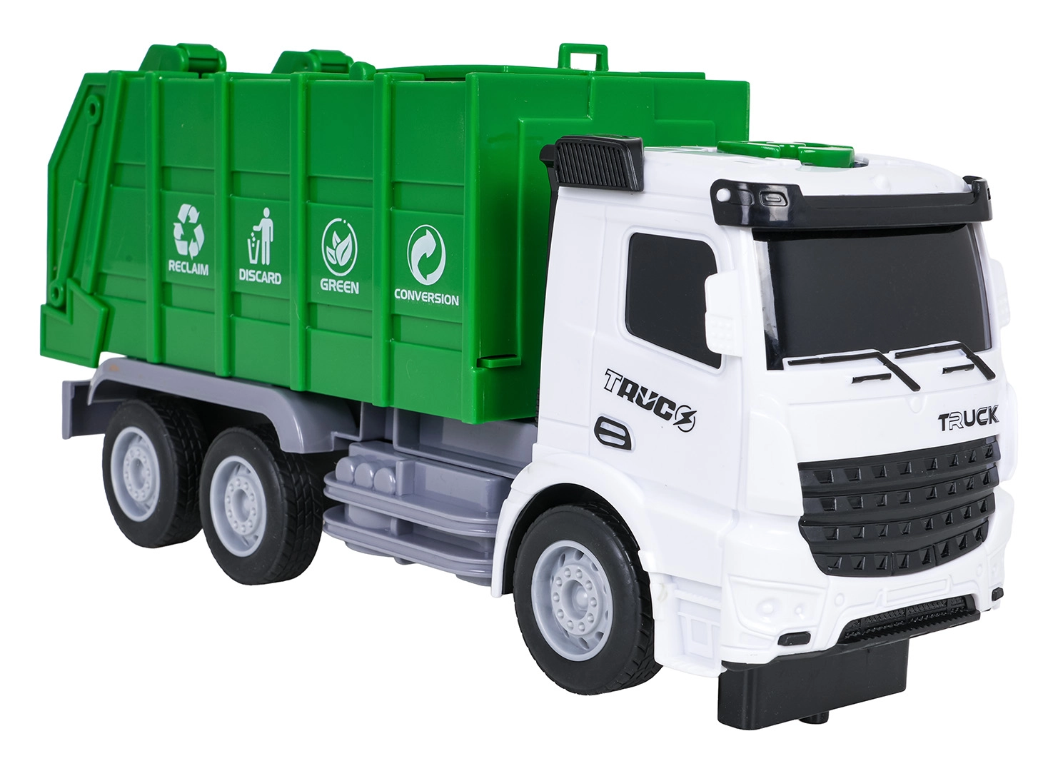 Ta realistični smetarski tovornjak bo navdušil vsakega malega ljubitelja delovnih strojev. Robusten dizajn, poudarek na detajlih in gumijaste pnevmatike zagotavljajo gladko in dinamično vožnjo po različnih površinah. Na strehi kabine je nadzorna plošča, ki sproži zvoke zagona, vožnje, vzvratne vožnje ter energično melodijo, ki jih dopolnjujejo utripajoče luči.