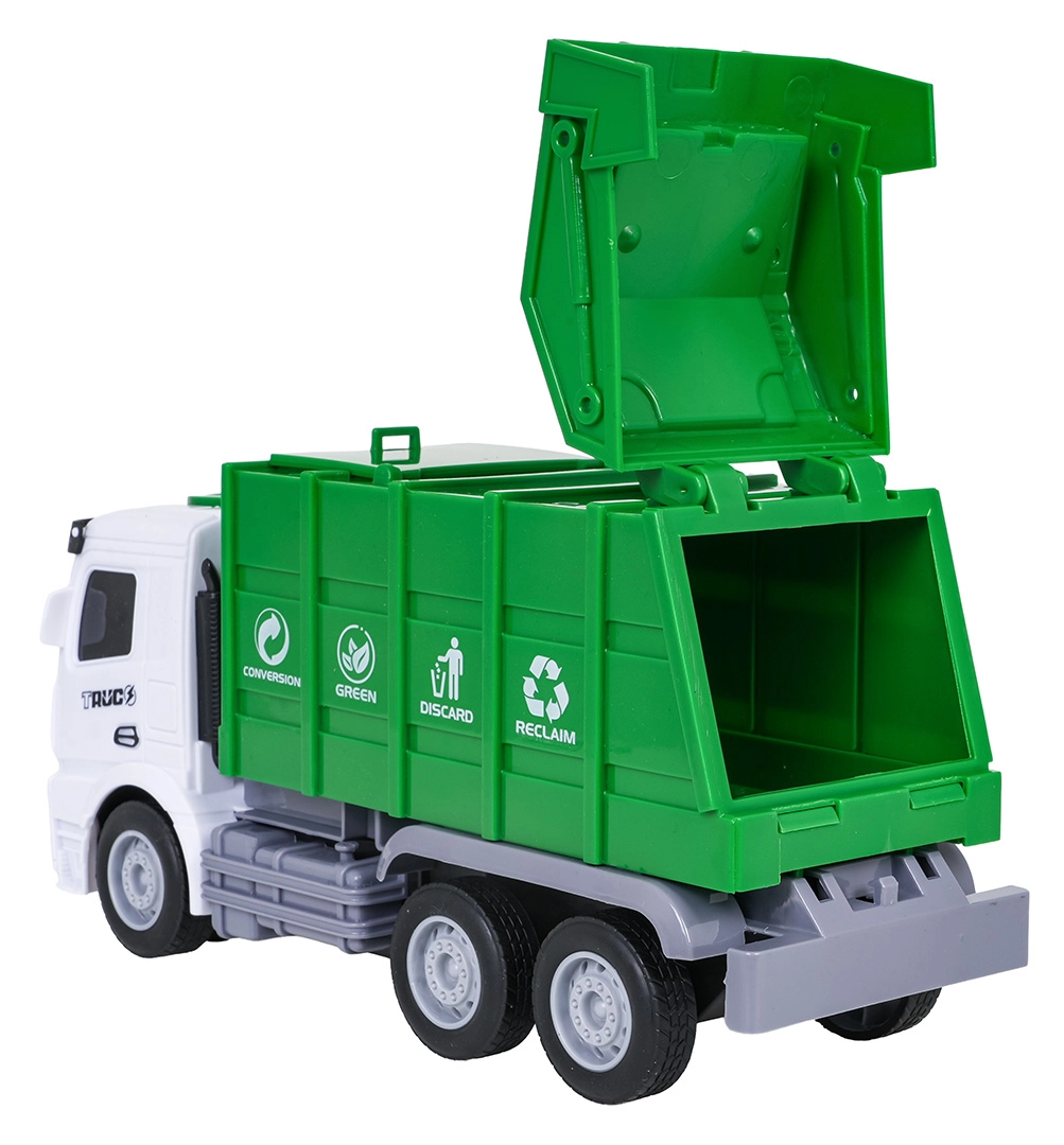 Za še bolj avtentično izkušnjo ima vozilo odpirajočo se zadnjo loputo in zgornje vstopno okence za enostavno »nakladanje odpadkov«. Igra spodbuja domišljijo, fino motoriko ter učenje principov ločevanja in recikliranja.