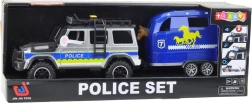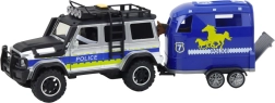 Ta podrobno izdelan komplet združuje svet službenih vozil in tematsko igro z živalmi. Robustni črno-modri avto s policijsko grafiko in prikolico za prevoz konj navduši na prvi pogled. Otroci bodo uživali v realističnih svetlobnih in zvočnih učinkih, enostavnem priklopu in odklopu prikolice ter odpirajočih se vratih, ki podpirajo domiselne scenarije.