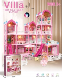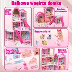 Bogata oprema vključuje pohištvo za posamezne prostore, drobne dekoracije in vrtne dodatke (npr. ležalniki in senčnik) ter tudi punčko, pripravljeno, da se takoj vseli. Trdna konstrukcija zagotavlja dolge ure varne zabave in možnost kreativnega gradljenja in aranžiranja.