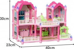 Hišica za punčke Woopie Vrtna vila prinaša otrokom pravljično vzdušje in neskončne možnosti igre. Dva nadstropja, šest premišljeno zasnovanih sob, terasa in dekorativni elementi tvorijo očarljiv “grad”, ki zaradi svetlečih stolpičev dobesedno zasije. Pastelna kombinacija rožnate, vijolične in mentol zelene ustvarja prijetno okolje za samostojno in skupno igro.