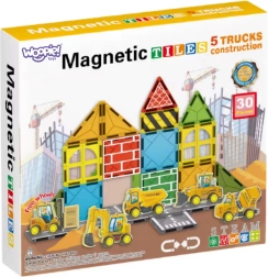 Odkrijte ustvarjalni svet gradnje z magnetnimi kockami WOOPIE. Set ponuja 30 trdnih, barvitih delov velikosti 7,5 × 7,5 cm in 5 realističnih gradbenih vozil s prostotekočimi kolesi. Deli se preprosto in hitro povezujejo zahvaljujoč magnetom, so varni in vzdržljivi – idealni za majhne ročice. Odlično razvijajo domišljijo, fino motoriko in timsko sodelovanje.