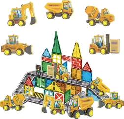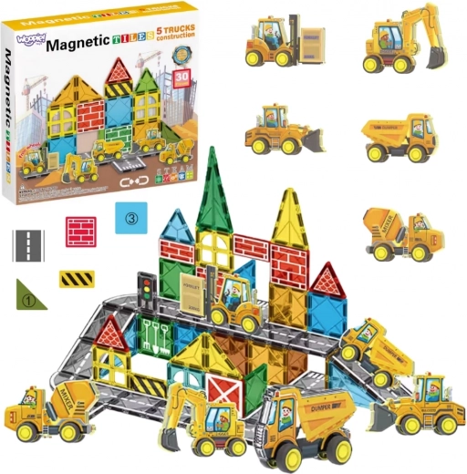 - Magnetne kocke z gradbenimi vozili