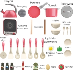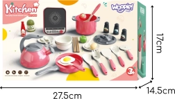 Rožnati set malega kuharja WOOPIE je idealen za otroke od 3 let, ki radi posnemajo odrasle. Zahvaljujoč indukcijski kuhalni plošči z osvetlitvijo deluje igra realistično in spodbuja naravno učenje skozi igro. Kakovostna in varna plastična izvedba zagotavlja dolgo življenjsko dobo in udobno uporabo.
