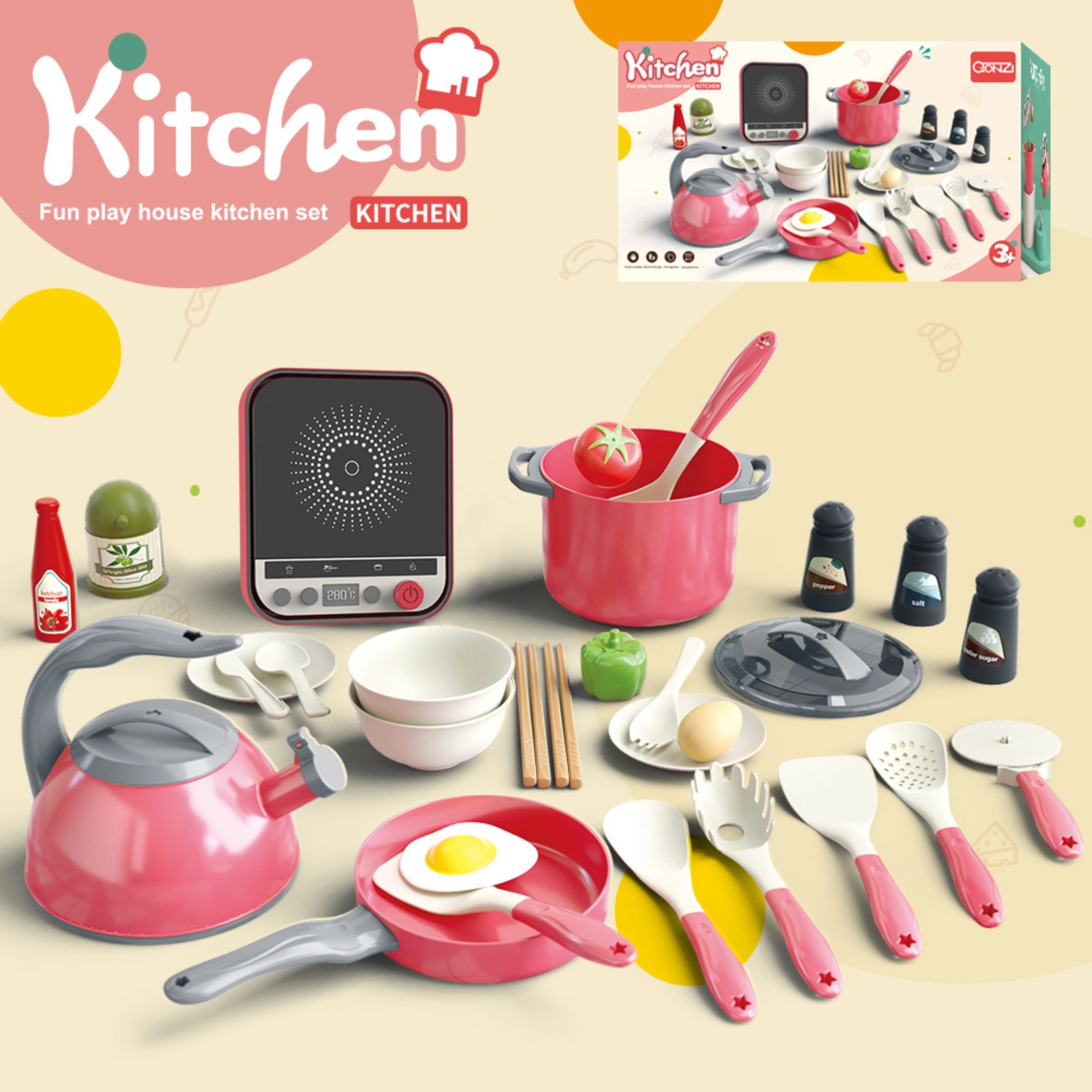 Obsežen kuhinjski set znamke WOOPIE bo razveselil vsakega malega kuharja. Ponuja kar 30 delov, vključno z indukcijsko kuhalno ploščo s svetlobnimi učinki, lonci, ponevjo z jajcem na oko ter bogatimi dodatki. Otroci uživajo v realistični igri vlog, razvijajo ustvarjalnost, domišljijo in fino motoriko ter se učijo socialnih veščin pri skupnem “kuhanju”.
