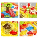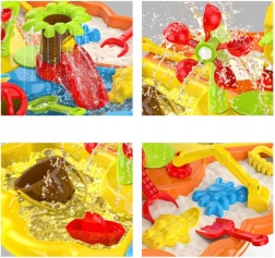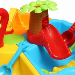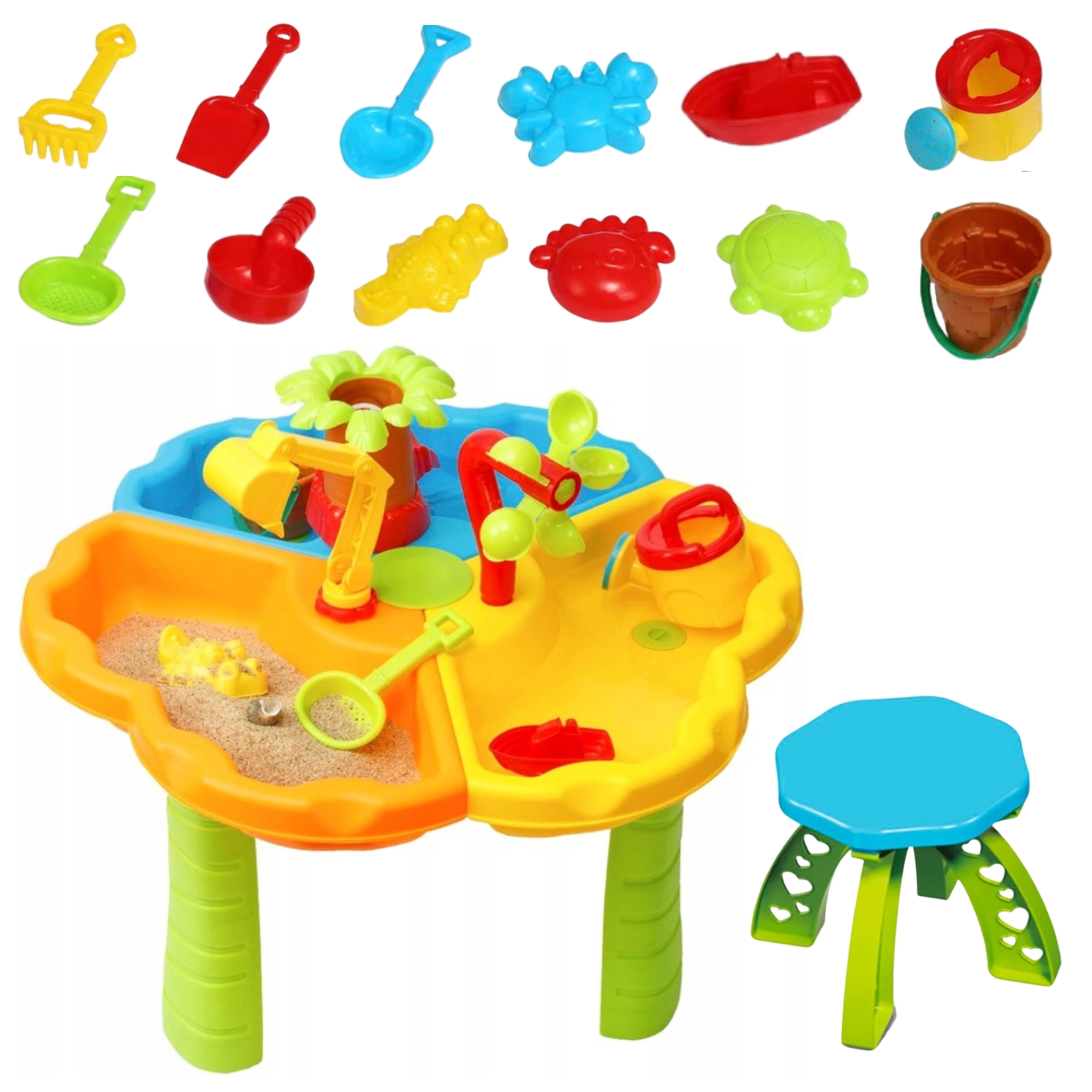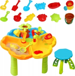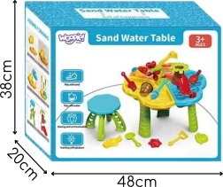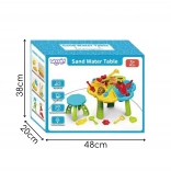 Igralna mizica 2v1 za vodo in pesek je idealna za vrt, balkon, teraso in tudi otroško sobo. Trodelni koriti omogočata hkratno eksperimentiranje z vodo, peskom in dodatki, tako da lahko otroci gradijo, prelivajo, cedijo in odkrivajo različne strukture. Ergonomičen stolček zagotavlja udobje in stabilnost med igro.