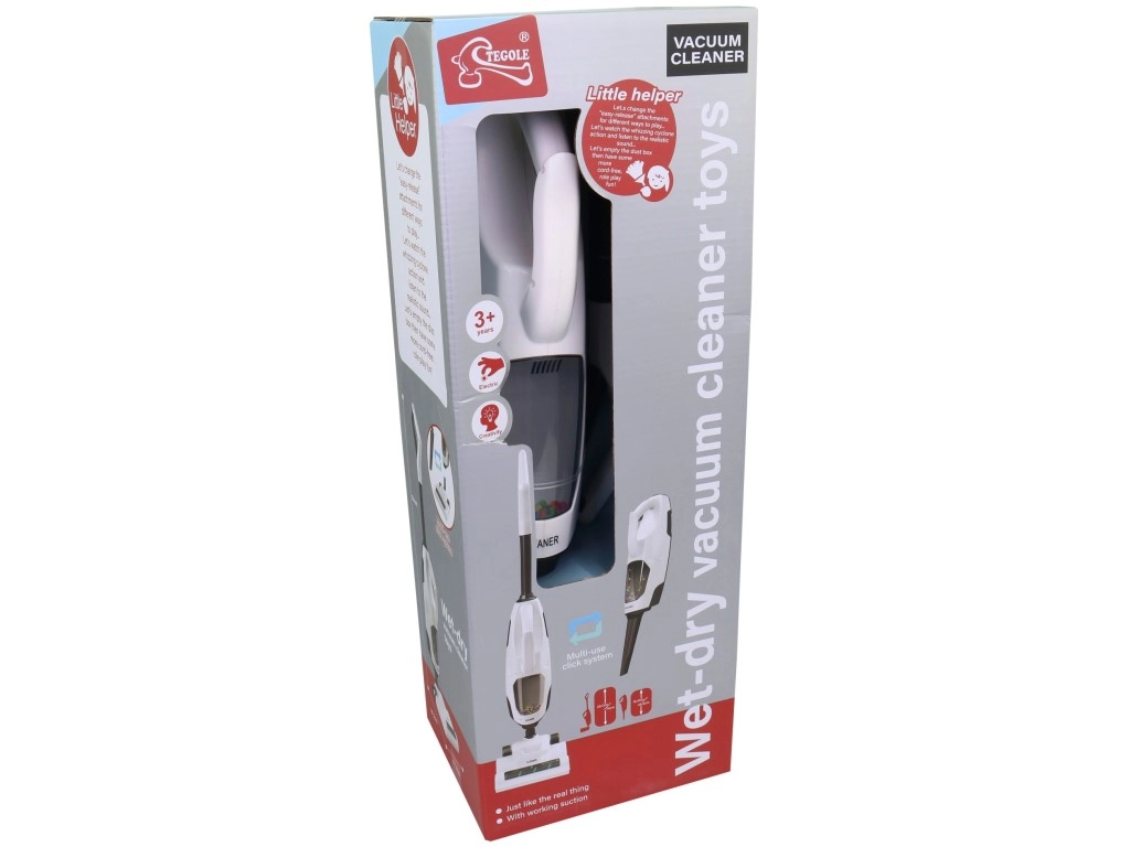 Lahka in trpežna konstrukcija iz plastičnega materiala je prilagojena otroškim rokam. Sesalnik napajajo 3× AA 1,5 V baterije (niso priložene) in je primeren za otroke od 3 let.