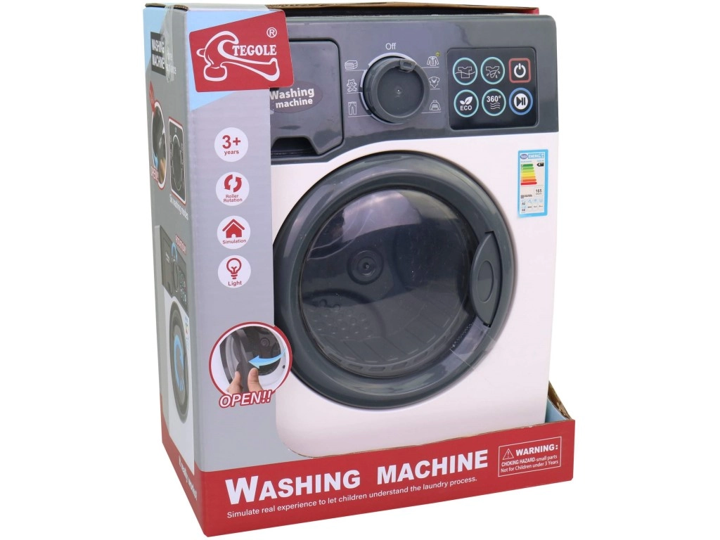 Otroški pralni stroj na baterije bo razveselil male gospodinje z realističnim videzom in funkcijami. Ima odpirajoča se vratca, predal za pralno sredstvo in oddaja zvočne učinke za še več zabave. Dovolj je, da pralni stroj »napolnite« in opazujete potek pranja – idealna igrača za otroke od 3 let dalje.