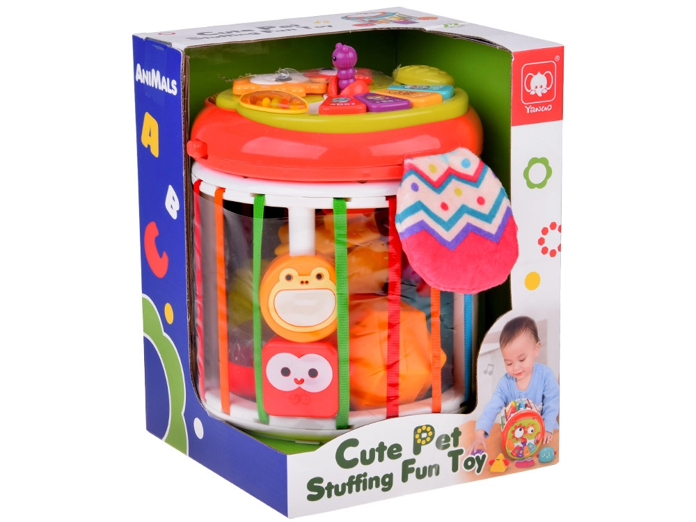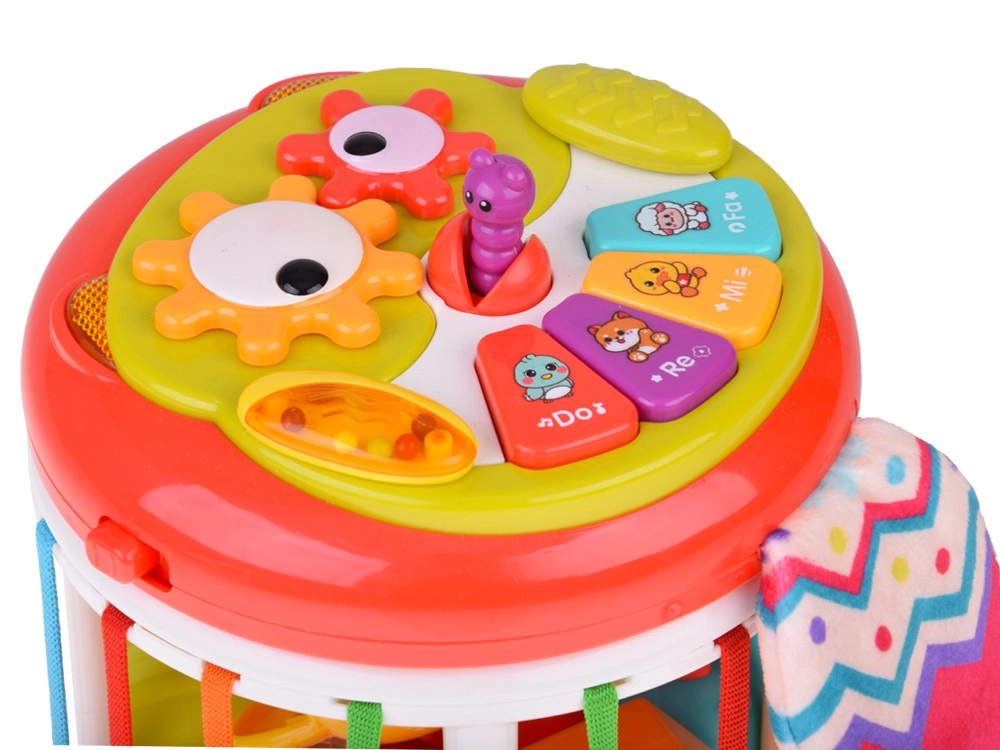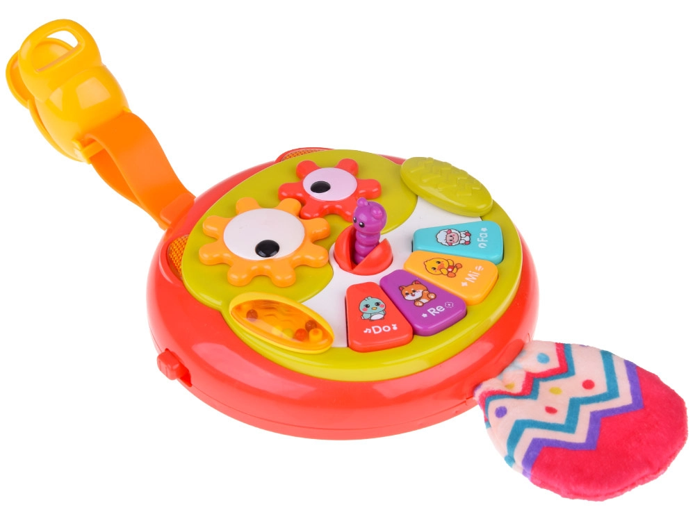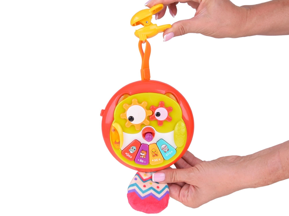 Štirje gumbi z živalmi predvajajo tone do–re–mi–fa, pristne živalske zvoke ter kratke instrumentalne melodije in pesmice. Otroci naravno razvijajo sluh in ritem skozi igro.