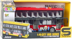 Nadstropni mestni avtobus v merilu 1:16 je podrobno izdelan model z zastekljenimi okni, ki izgleda kot pravo vozilo z mestnih linij. Zahvaljujoč odpirajočim se vratom je enostavno uprizoriti vstop in izstop potnikov, medtem ko frikcijski pogon (pull-back) poskrbi, da se avtobus po navijanju sam zapelje naprej.