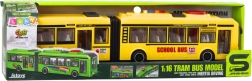 Realističen zglobni šolski avtobus v merilu 1:16 bo navdušil male ljubitelje mestnega prometa. Ponuja svetlobne in zvočne učinke, odpirajoča se vrata ter upravljanje zasuka koles z vrtljivim gumbom na strehi. Dovršena izdelava, rumena šolska podoba in trpežni materiali zagotavljajo zabavno in razvijajočo igro, polno domišljije.