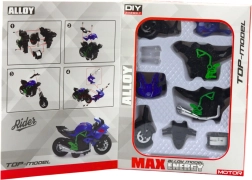 Sestavite si svoje motorno kolo! Ta kovinsko‑plastični model v merilu 1:14 ponuja realistične podrobnosti, moderno zeleno‑modro izvedbo in prinaša otrokom ter odraslim kreativno zabavo, ki razvija fino motoriko, logično razmišljanje in potrpežljivost.