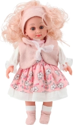 Prisrčna punčka SWEET ANGEL višine 36 cm očara z nežnimi potezami, dolgimi svetlorumenimi lasmi in elegantnim videzom. Oblečena je v rožnato cvetlično obleko z belim ovratnikom, rožnat brezrokavnik, ujemajoči se naglavni trak in nogavičke. Odlična za igranje vlog, razvoj ustvarjalnosti in skrbnosti.