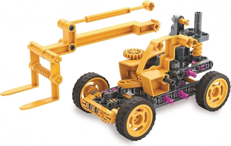 Ta izobraževalna sestavljanka iz serije Science & Play omogoča sestavo teleskopskega viličarja s funkcionalnimi mehanskimi elementi. Zaradi vidnih prenosov in zglobov si otroci nazorno preizkusijo, kako delujejo zobniki, prenosi in pogon koles. Sestavljanka podpira STEM veščine in na igriv način približa principe mehanike.