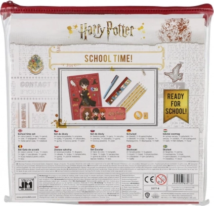 Slogoven šolski komplet z motivom HARRY POTTER v prozornem plastičnem etuiju vsebuje vse, kar mali (pred)šolar potrebuje: peresnico, ravnilo, svinčnik, 4 barvice, radirko, šilček, kemični svinčnik in zvezek za zapiske. Odličen za pisanje, risanje in zapiske v šoli ali na poti.