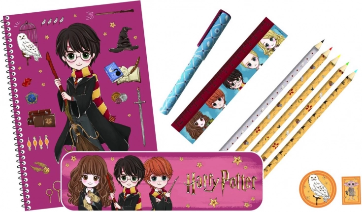 Ta popoln šolski in ustvarjalni komplet z licenciranimi motivi HARRY POTTER prinaša odlično usklajene pripomočke v praktičnem etuiju na zadrgo. Otroke bodo razveselili chibi liki priljubljenih junakov, starše pa vzdržljiva izdelava in pregledna organizacija pripomočkov na enem mestu.