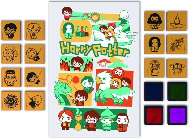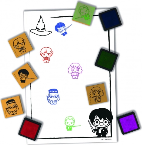 Zabavni žigi s blokom HARRY POTTER – penasti set 14 žigov in 4 barvnih blazinic