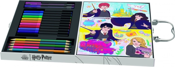 Odkrijte čarobni svet ustvarjanja s kreativnim kovčkom Harry Potter. Kompaktni set v prenosnem kovčku ponuja flomastre, dvobarvne barvice, gel pisala in gel flomastre, risalni zvezek in nalepke. Zunanja stran kovčka je primerna za barvanje, zato si otroci ustvarijo svoj izviren dizajn. Odlično za potovanja, ustvarjanje doma in kot darilo za male oboževalce sveta čarov in urokov. Primerno za otroke od 3 let.