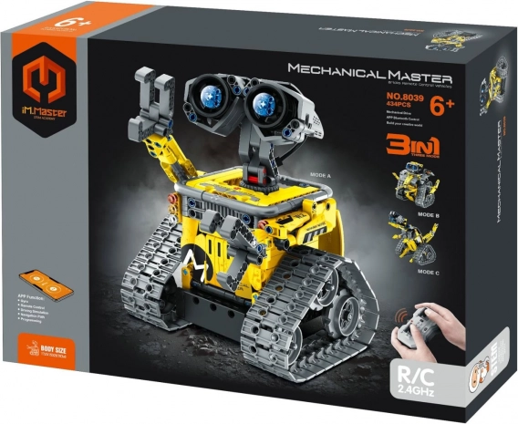 Odkrijte pametni komplet, ki raste z otroki. iM.Master 3v1 omogoča sestavo kar treh različnih modelov iz 434 skrbno zasnovanih delov. Vsak model je popolnoma funkcionalen: ima premične dele, gumijaste gosenice in mehanske elemente za realističen premik.