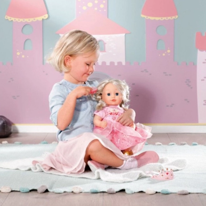 Lutka Baby Annabell Mala Sladka Princesa je ustvarjena za male princese z bogato domišljijo. Ko jo poljubite, se odzove z zvoki poljuba in njena lica zardijo. Poleg tega zapre svoje žive modre oči. Z njenimi kakovostnimi lasmi in lastno krtačo za lase lahko ustvarjate čudovite pričeske. Njeno mehko telo je idealno za crkljanje in počitek po velikem dnevu polnem iger.