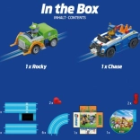 - 2× avto (Chase, Rocky), ravnine, ovinki, 2× vrteči propeler, napajalni del, 2× upravljalnik hitrosti, opore, ograje, spojke steze, navodila