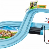 Steza dolžine 2,4 m ponuja ravnine, ovinke in dva vrteča propelerja, ki povečata zabavo med vožnjo. Sestavljanje je hitro in stabilno zahvaljujoč višinsko nastavljivim oporam in sistemu sponk. Napajanje na 4× C baterije zagotovi do 6 ur vožnje, zato bodo otroci brez prekinitev uživali v številnih dirkah.