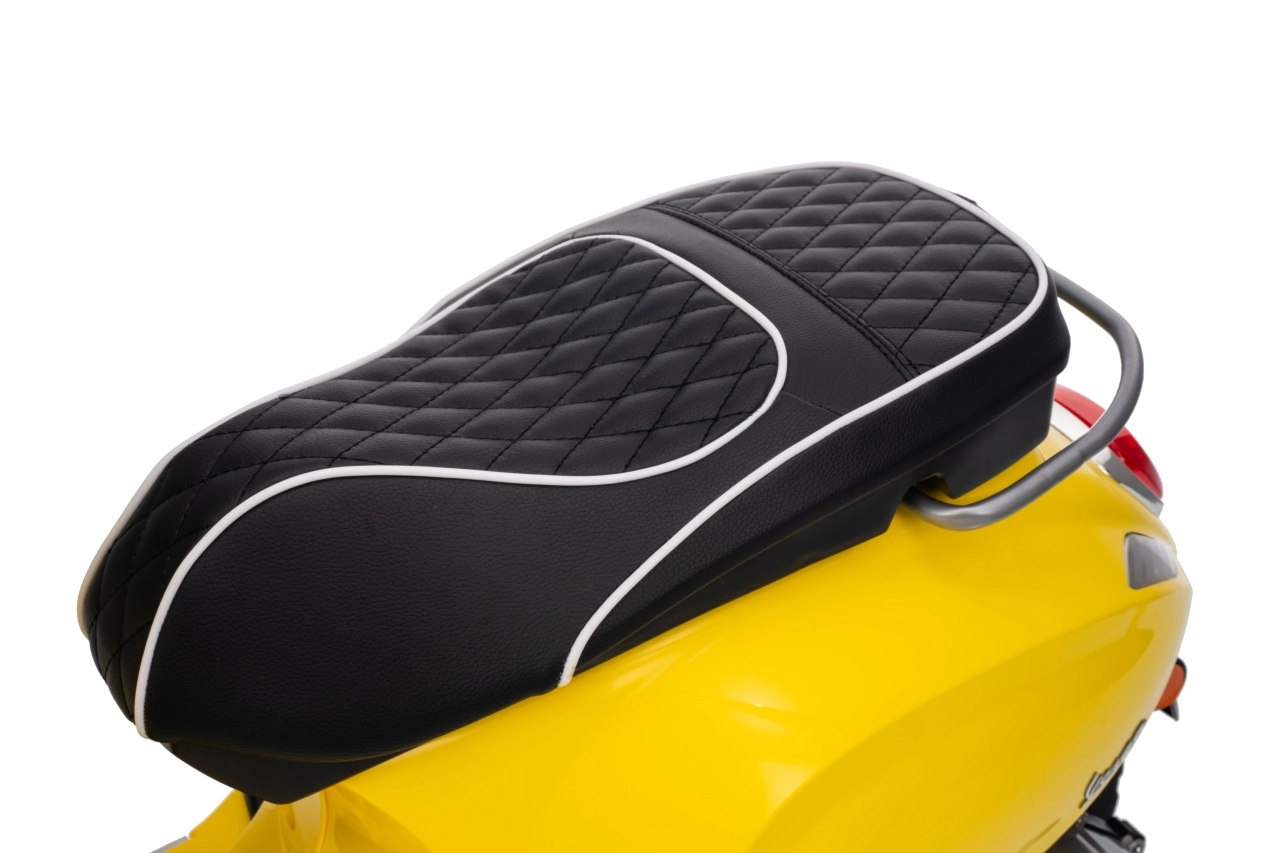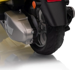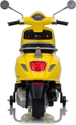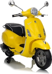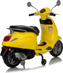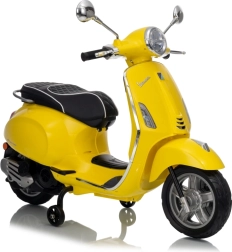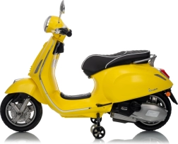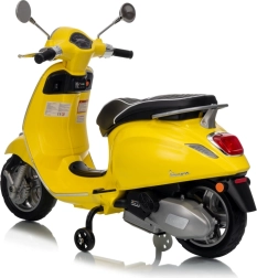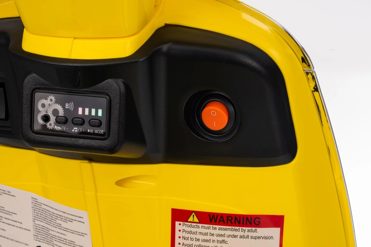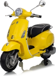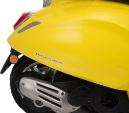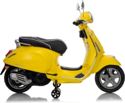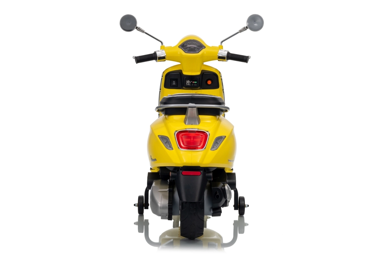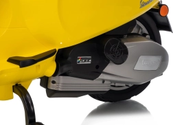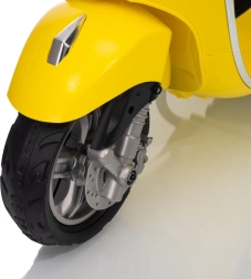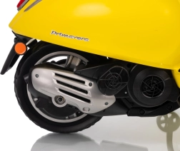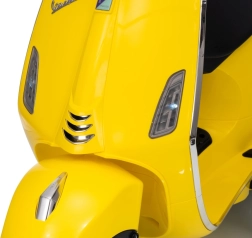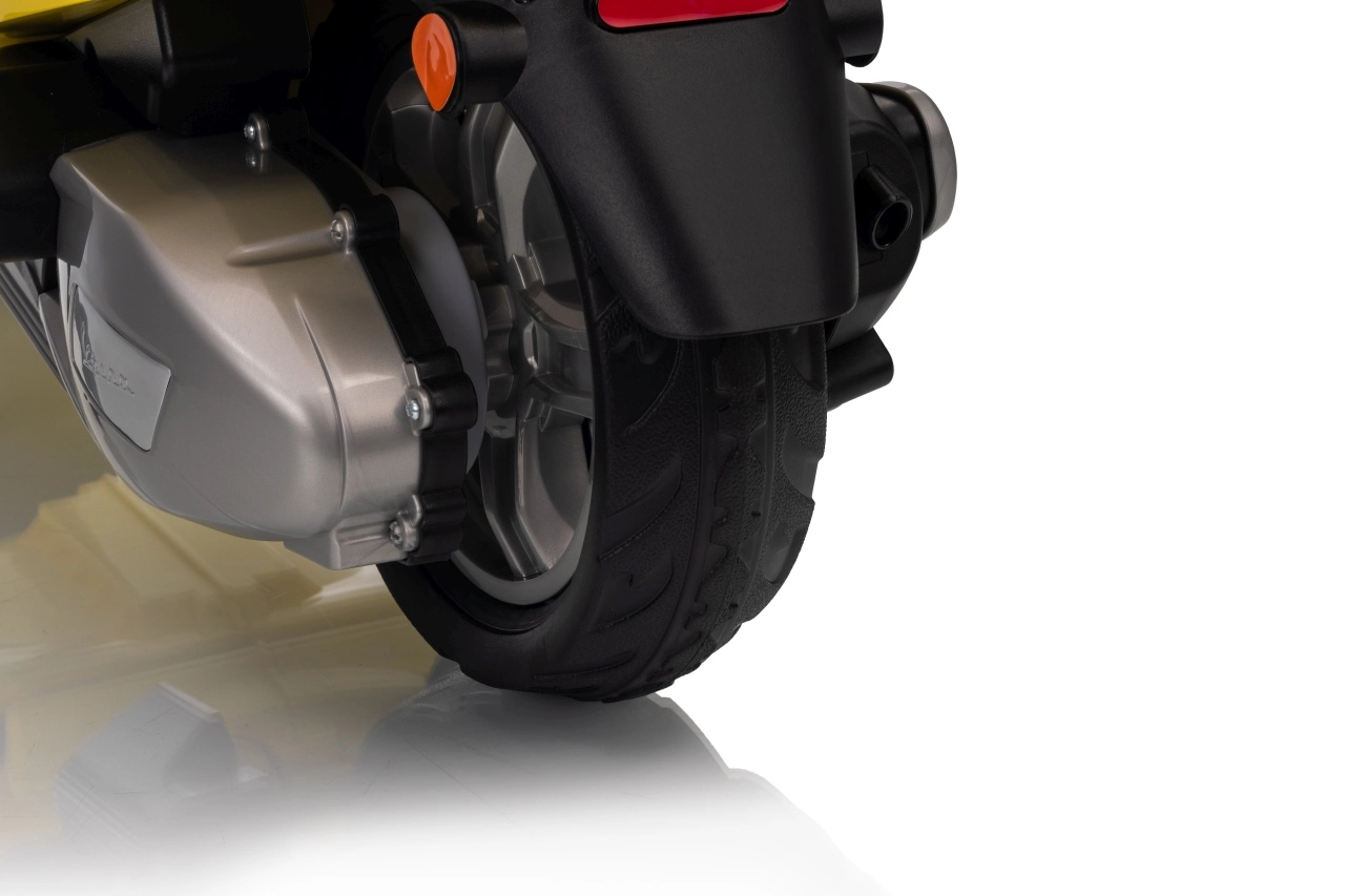Stilski otroški električni skuter VESPA ROMA v živahni rumeni barvi ponuja otrokom varno zabavo in prve vozne izkušnje. Zahvaljujoč dvema motorjema 2×35 W, bateriji 12 V 7 Ah, mehkim EVA kolesom in mehkem zagonu je vožnja udobna in stabilna. Ne manjkajo sprednje in zadnje LED luči, avdio plošča z MP3/Bluetooth/AUX, indikator napolnjenosti ter udoben sedež iz eko usnja. Odlična izbira za male voznike.