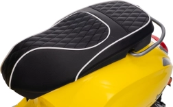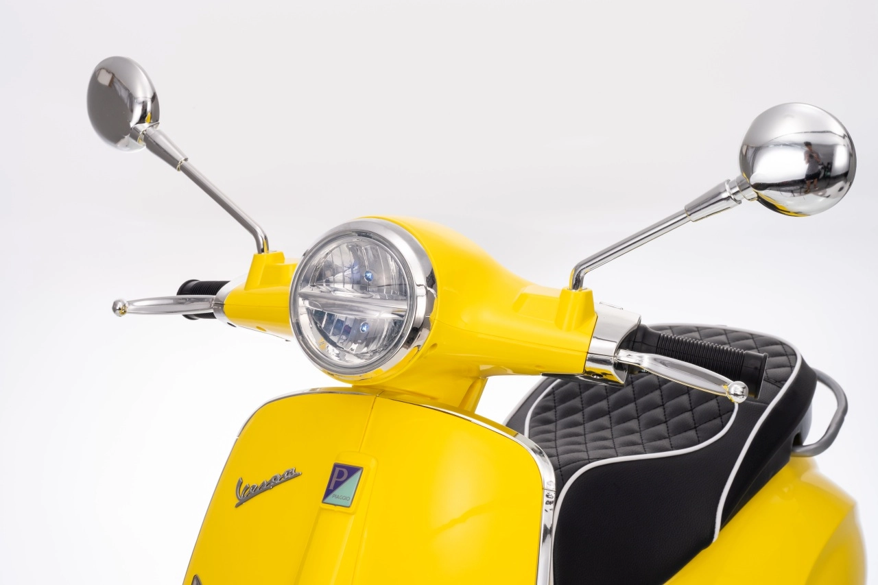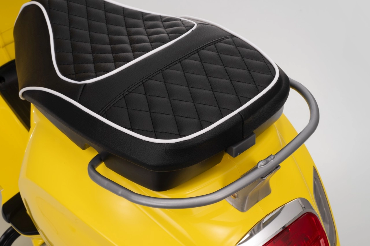 Vgrajena avdio plošča z MP3, Bluetooth in AUX predvaja priljubljene pesmi, na krmilu so gumbi za zvoke in hupo. Svetle LED luči spredaj in zadaj izboljšajo vidljivost in dodajo avtentičen videz prave VESPE.